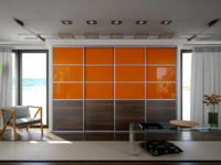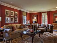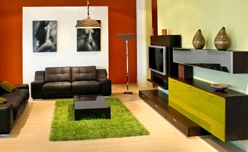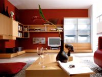 Der einfachste Weg wird sein, Polstermöbel in diesem Design zu bekommen. Sie wird Ihrem Design Schwung verleihen. Es ist durchaus möglich, die passenden Vorhänge und anderes Zubehör zu wählen. Wände und Dias in Terrakottatönen sind viel schwieriger zu finden. Es gibt aber Fassaden aus Naturholz oder MDF mit einem ruhigen Farbton, der vor einem kontrastierenden Hintergrund sehr würdevoll aussehen wird.
