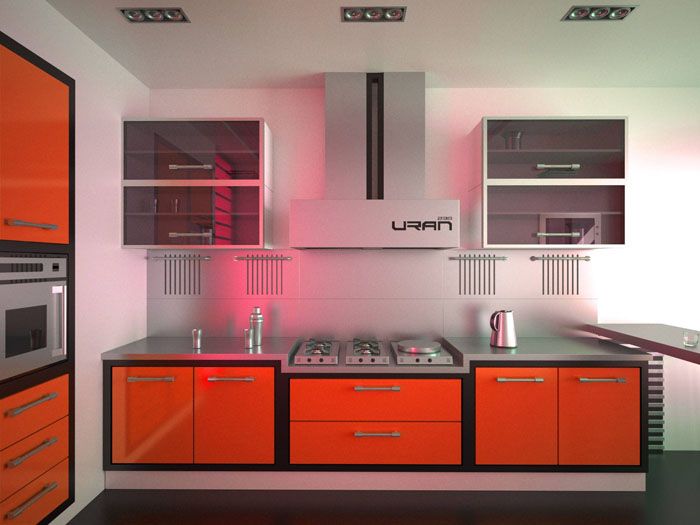 Die fröhlichen warmen Orangetöne eignen sich sehr gut für den Hot Shop. Sie können in Möbeln, Textilien und Geschirr verwendet werden. Keine schlechte Idee für romantische Naturen - helle Pastellwände mit einem Hauch von Ocker und Böden in der Farbe von Naturkeramik. Für geräumige Küche Sie können einen dunkleren Ton verwenden und ihn mit der Reinheit von weißem und lebhaftem Grün verschönern. Küchen in Terrakotta-Farben in der Fotogalerie.