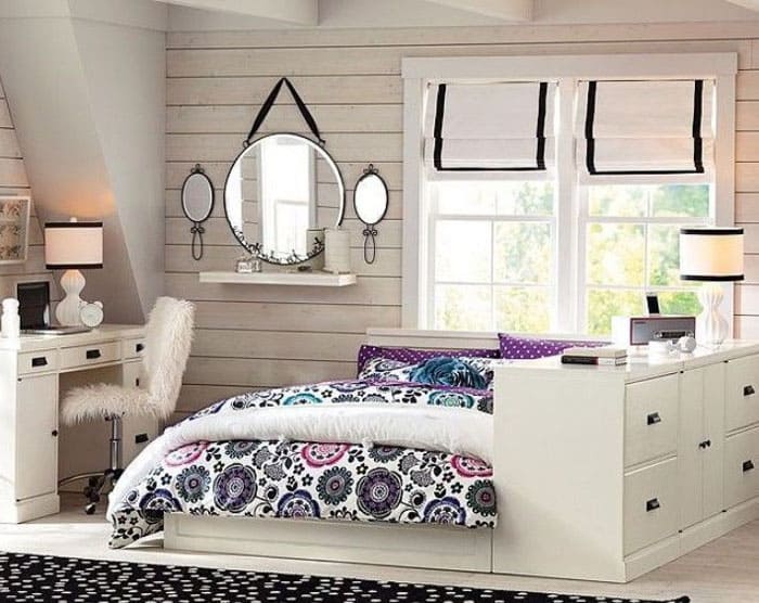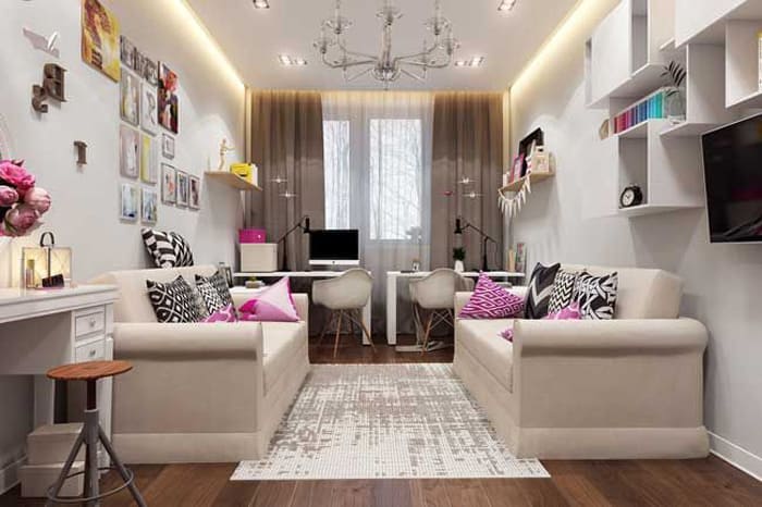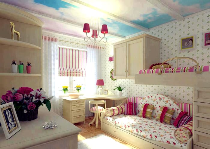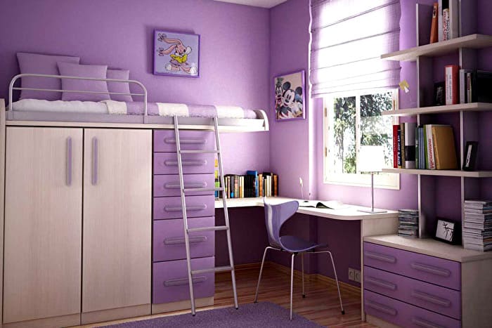 Ако говорим за стая за две тийнейджърки, то преди всичко те обмислят къде ще спят, оттук ще отиде целият дизайн на спалнята. Момичетата на различни възрасти все още остават принцеси по сърце, така че е напълно възможно да се намери средна позиция.