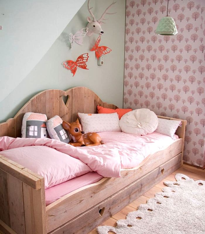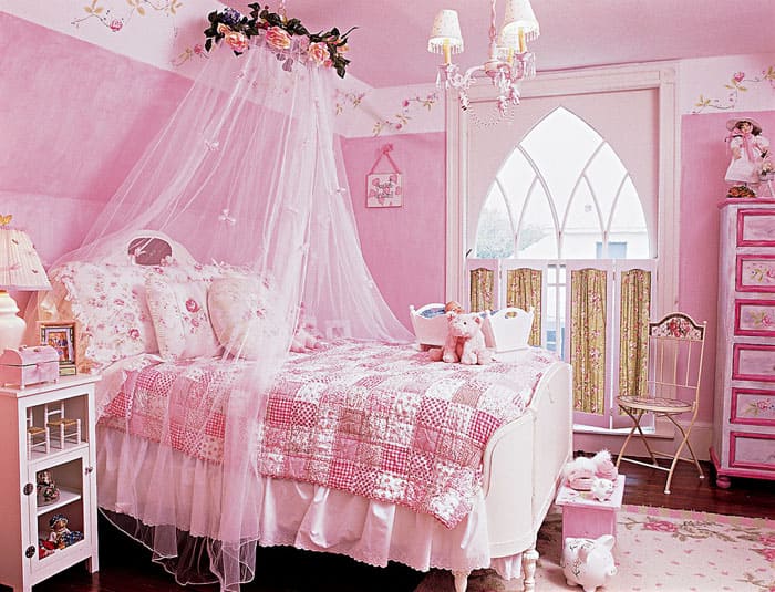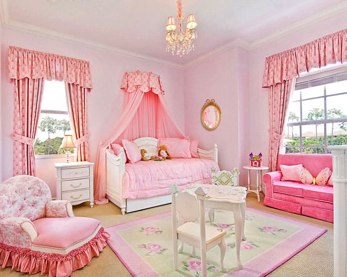 Розова стая за момиче е един вид стандарт. Този цвят има много интересни нюанси, които да опитате. смесете с други цветове в декора.
