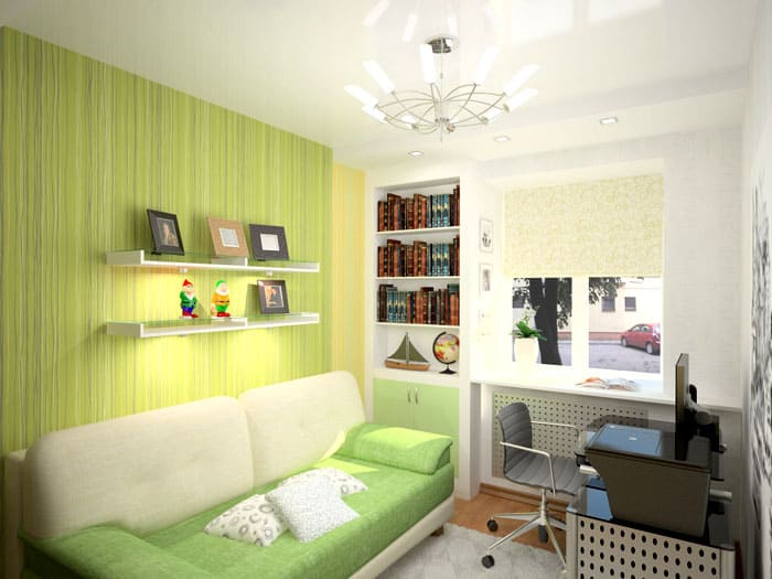 Тъй като зрението през училищната възраст е значително натоварено, осветителни тела станете важен атрибут. Един светлинен източник е необходим на леглото, друг над работната зона, общ полилей и осветление в зоната за игра, ако стаята е голяма.