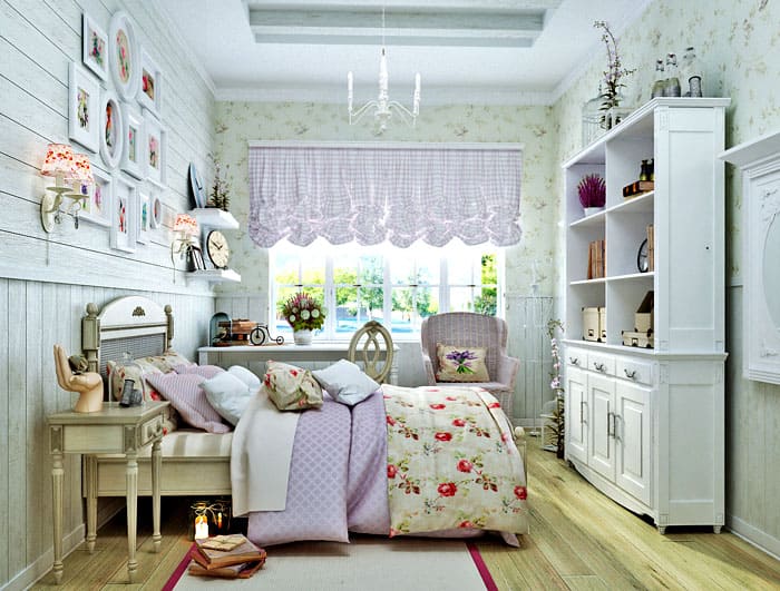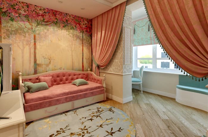 Темата на дизайна може да бъде различна: за момиче на всяка възраст държавата е добра или прованс... Нежните натури могат да украсят стая в стил изтъркан шик, а класика е подходяща за непретенциозна дама.