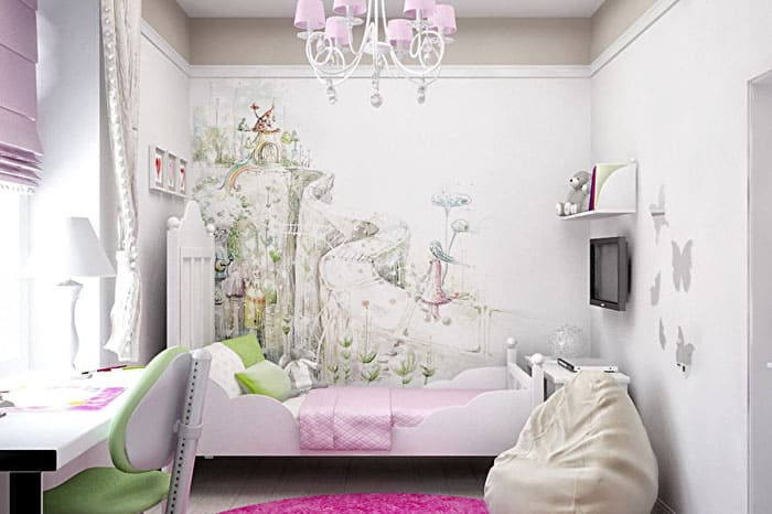 Декорация на стени: тапети и други покрития в детската стая за момиче