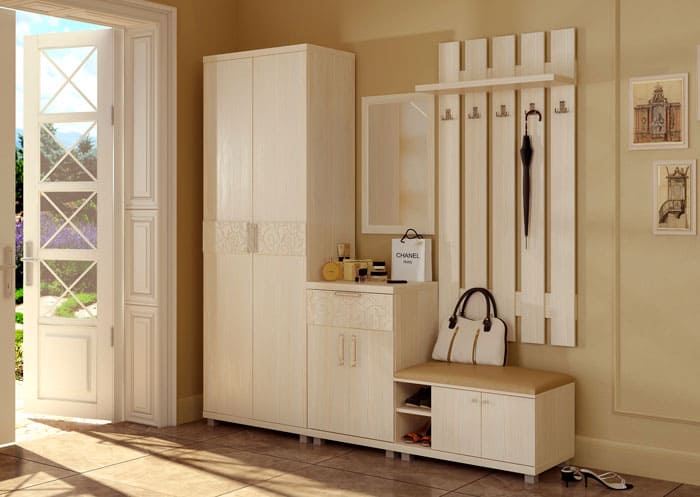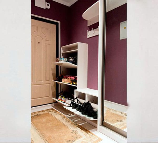 В горната част традиционно се съхраняват шапки, отдолу се държат обувки и е добре, когато рафтовете са от един и същ мебелен ансамбъл.
