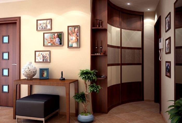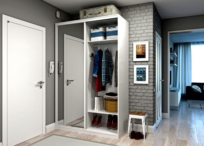 Плъзгащият се гардероб може да заема цялата стена, като е част от слушалките. За съжаление не всички коридори могат да побират такива удобни мебели.