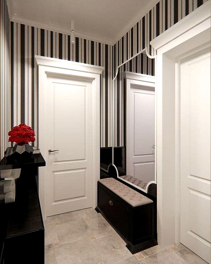 Ако няма опции за преустройство, тогава трябва да играете с дизайна - в този случай можете визуално да направите коридора по-просторен. Цветът, светлината и правилната подредба на мебелите ще помогнат в това.