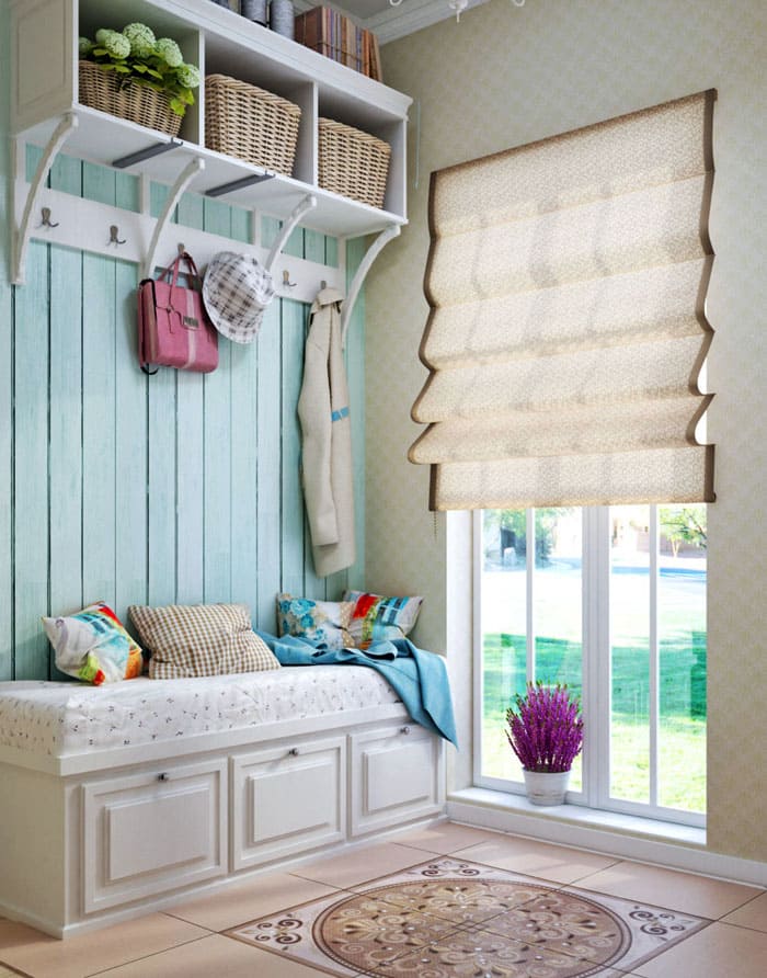 Деликатни нотки на френски прованс направете коридора уютен и сладък. Изобилието от светли тонове и комбинация от приятни за очите цветове пораждат деликатни интериорни детайли.