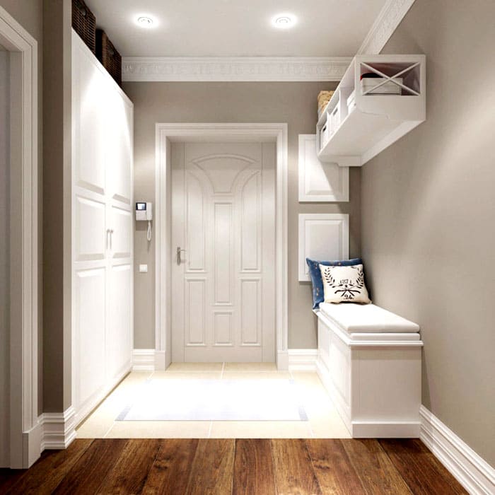 Бялото е известно като разширяващо се пространство на нивото на възприятие и затова първо влиза в желаната палитра от цветове. В допълнение, много често в коридорите няма естествен източник на светлина; бялото ще помогне да озари стаята.