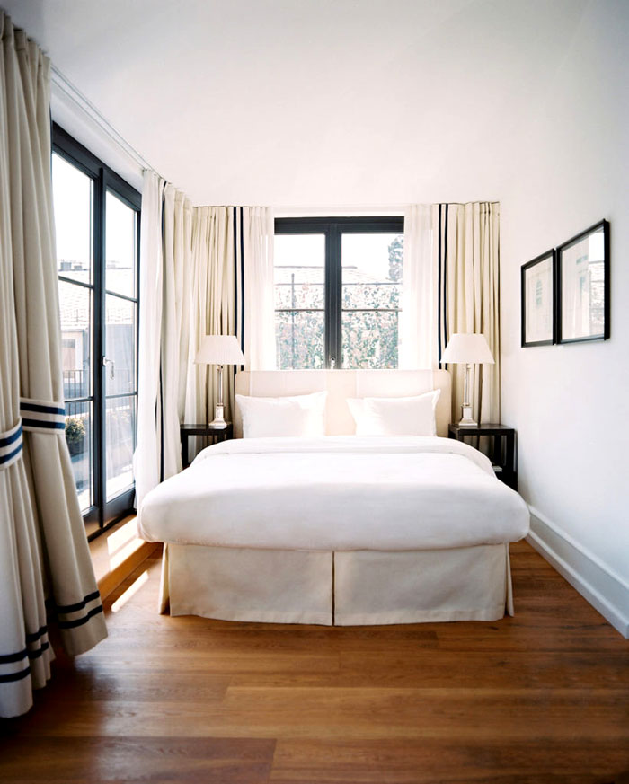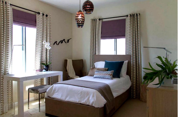 Два прозореца в малката спалня са добре позиционирани. Правилно подбраният текстил ще си свърши работата