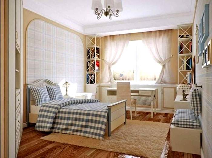 Препоръчително е да се организира тясно единично легло в стая за един човек, но с полезно място за съхранение