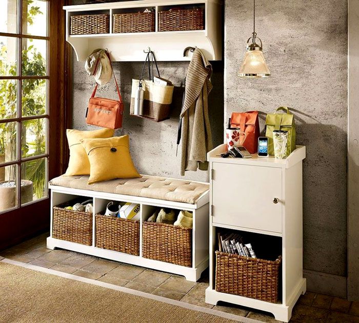 Във входното помещение могат да се поставят удобни предмети, които могат едновременно да служат като декор.