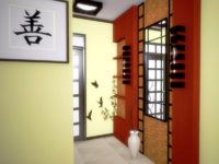 | Комбинация от прост дизайн и изтънчен завършек. При дизайна на стените за предпочитане е мазилката, по подовете - паркет или неговата имитация. | Мебелите са подбрани в тъмни цветове, със строги форми и изящна декорация. | Картини с пейзажи, килим с дискретен модел, красиви лампи в дървен дизайн, които да съответстват на мебелите. |
