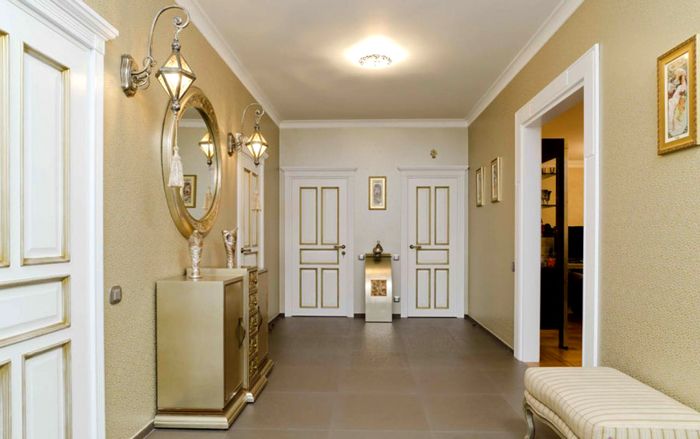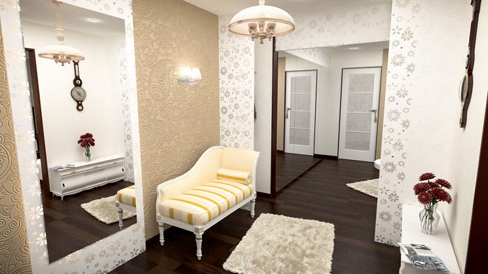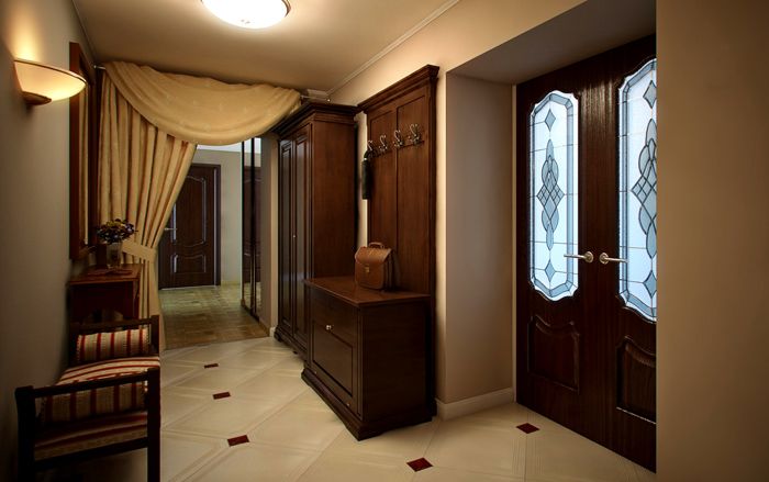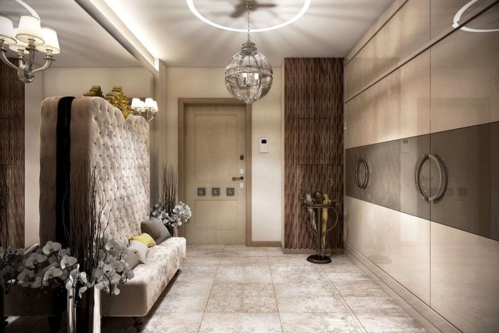 За голям кораб - чудесно пътуване, това правило е подходящо и за просторни коридори. Тук можете спокойно да изберете мебели. Ако в залата има място, можете да поставите диван, няколко скрина, голям гардероб и да изберете част от стената за огледало.