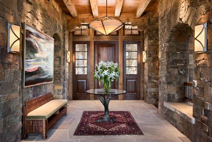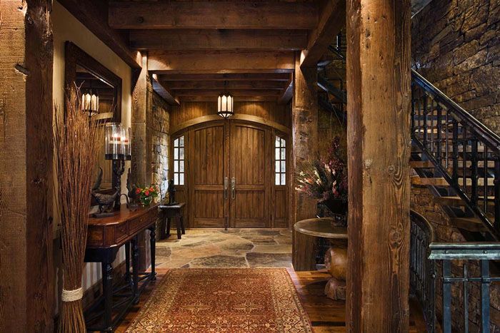 | Използването на скъпи естествени материали с ефект на стареене. За стени - дърво или мазилка, за подове - само дърво. Преобладаването на естествените нюанси на кафявото и бежовото. | Мебелите в този стил трябва да имат леко докосване на древността: във форма и цвят. Допустимо е да се използват плетени мебели. За тапицерия се използват козина, вълнени тъкани и лен. | Кожи на пода, свещници, малки картини от замъка, ловни принадлежности. |