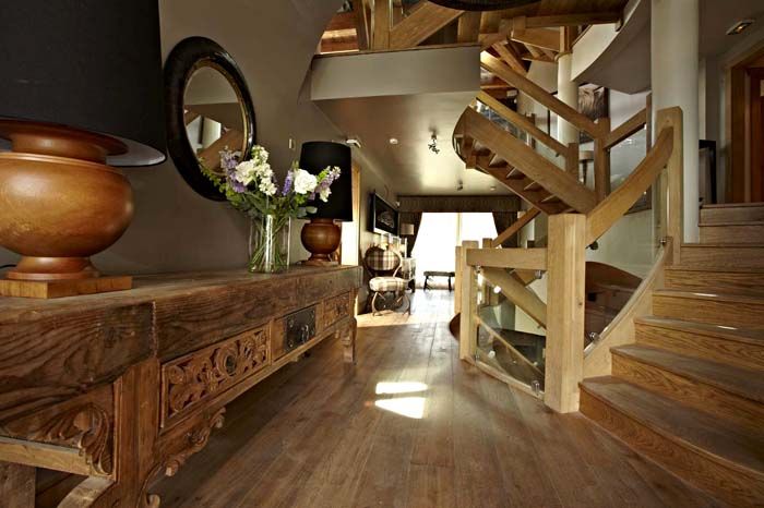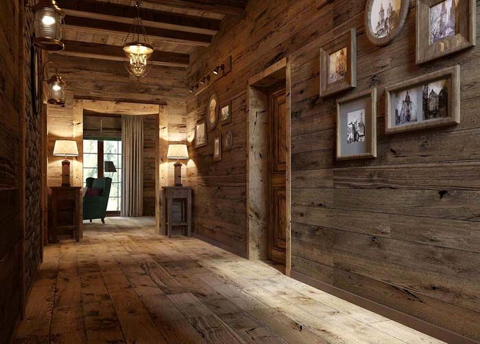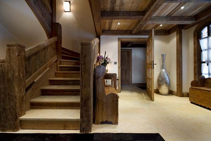 Снимки на интериора на коридорите в частни къщи в стил Шале: