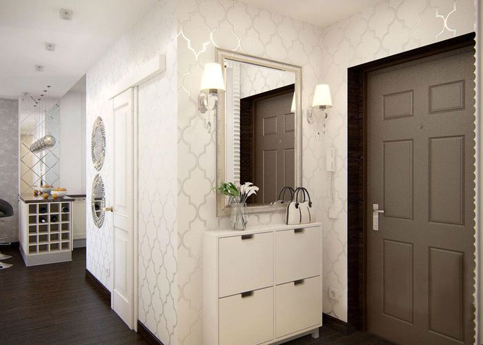 Съвет! Ако сте избрали тапет за украса на малък коридор, изберете малка рисунка и обикновени мебели.