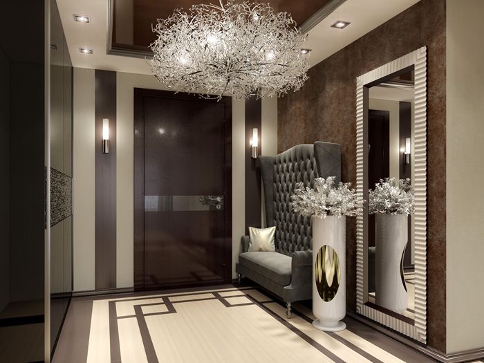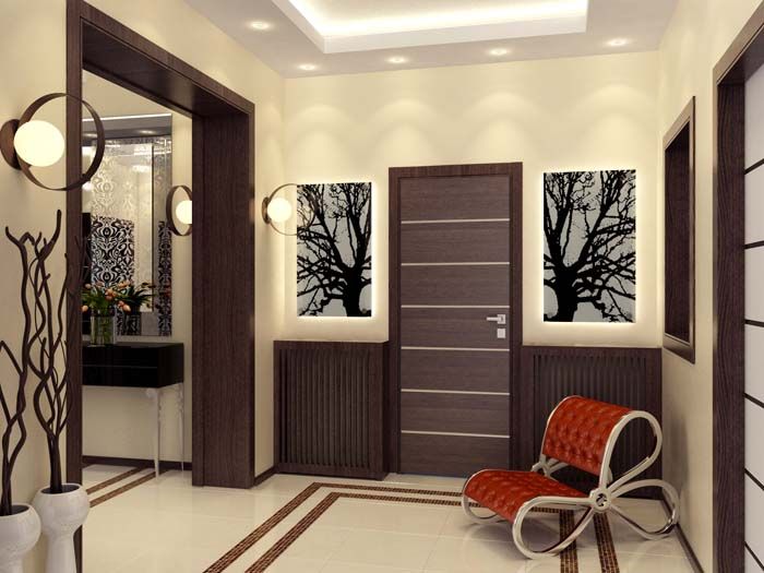 В повечето случаи коридорът е стая без прозорци, поради тази причина въпросът е верен подреждане на лампите много важно. Осветлението във фоайето трябва да е достатъчно ярко, за да намерите нещата в килера и да се облечете. Но не трябва да се увличате прекалено: твърде интензивното осветление ще нарани очите ви.