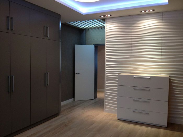 - Обемни 3D панели. 3D гипсовите панели са алтернатива декоративна мазилка... Те се монтират много просто: върху специално лепило. След монтажа панелите са покрити с боя и за специфични условия на залата прозрачен акрилен лак.