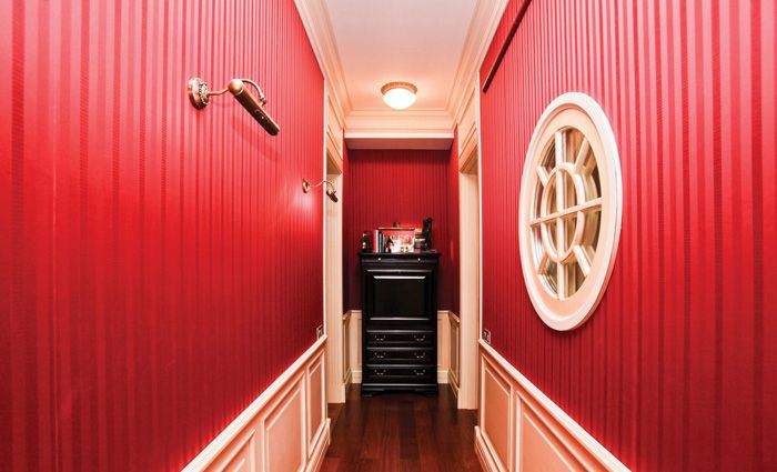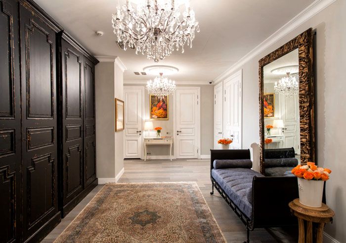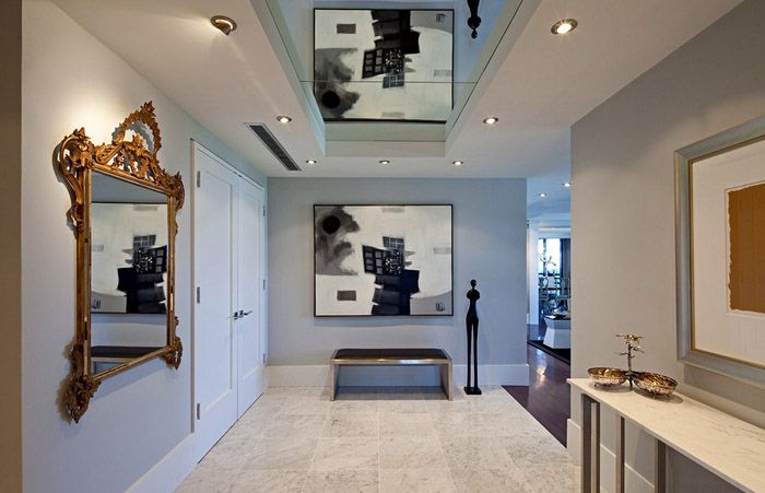 Такъв завършек не е много практичен за коридор, но в този случай трябва да помислите за материалите и да изберете правилните покрития, които могат да бъдат ефективно почистени.