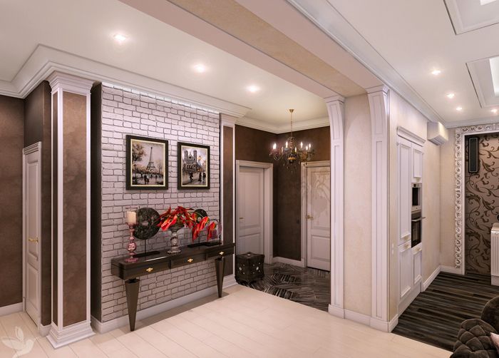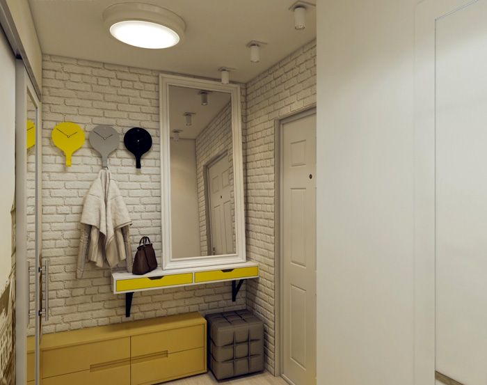 Интересна идея за дизайна на коридор в апартамент на следната снимка: