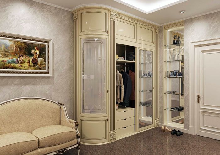 Вградените гардероби с различни форми ще решат всички проблеми и ако няма огледало, то може да бъде окачено на вратата на шкафа