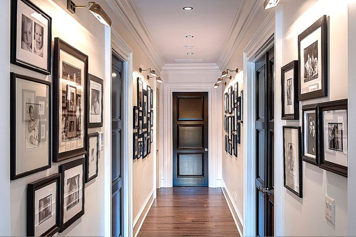 По-добре е да разделите тесен и дълъг коридор на отделни зони. Едното от тях е мястото, където се преобличат, другото е мястото, където се съхраняват нещата, третото, най-слабо функционалното, може да се превърне в място за поставяне на снимки или хоризонтална лента.