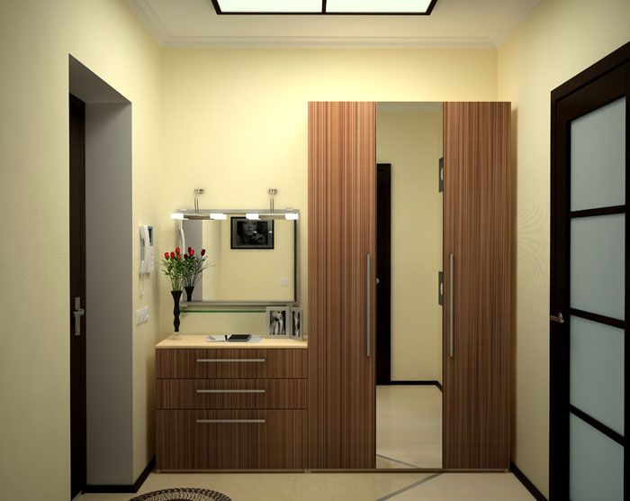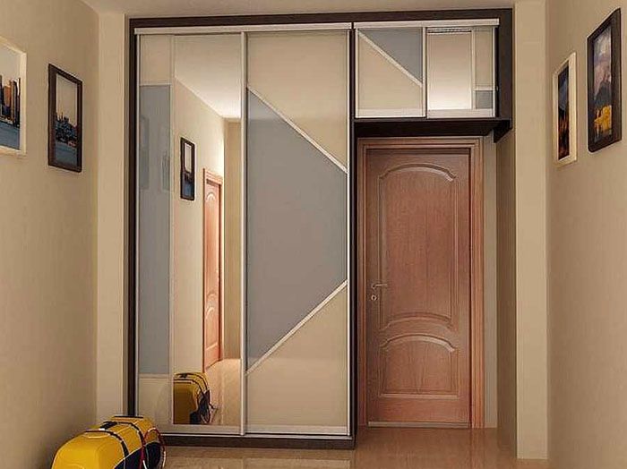 Не е лоша идея да поставите шкафа не покрай стената, а в края на коридора. По този начин можете да съкратите дължината му и оптимално да използвате свободно пространство.