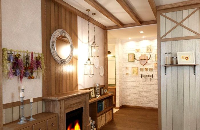 | Използването на естествени материали за декорация: камък, дърво, плат. На тавана могат да се монтират декоративни греди. Подовете са покрити с естествени дъски с изразителна текстура. | Груби ръчно изработени мебели от естествено дърво органично се вписват в такъв интериор. Големите скринове, грубите пейки и античните закачалки изглеждат добре. | Ръчно изработени тъкани бегачи, селски картини, плетени кошници и изделия от ковано желязо. |