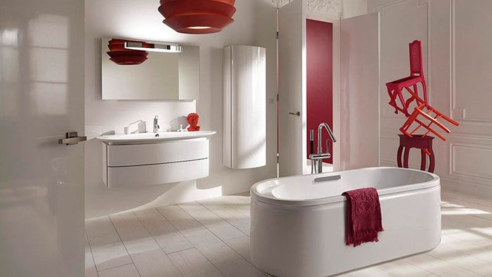 Разбира се, съвременните тенденции влияят и на класиката. Например, можете да инсталирате вана с необичайна форма или нестандартен цвят в една стая, ако я поставите правилно в пространството. Но най-често това е традиционна водопроводна арматура, често на издълбани крака, с бял цвят, който не е поразителен, не се откроява със своята претенциозност. Що се отнася до местоположението, тук няма ограничения. И въпреки че в градските апартаменти има място за това устройство до стената, което вече е класически градски интериор поради малкото площ на стаята, след това в частни къщи, където баните са големи, банята често се монтира през стената или в центъра на стаята.