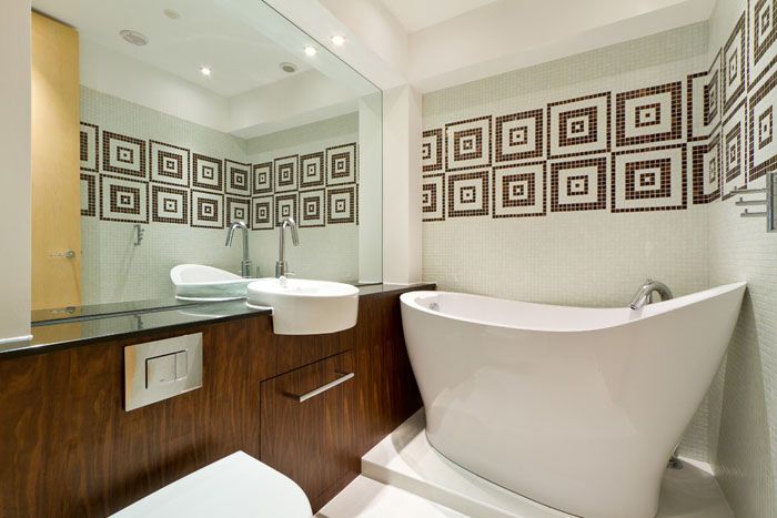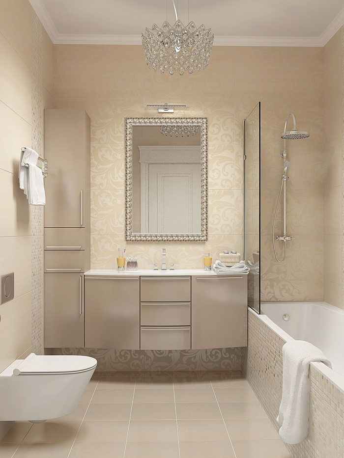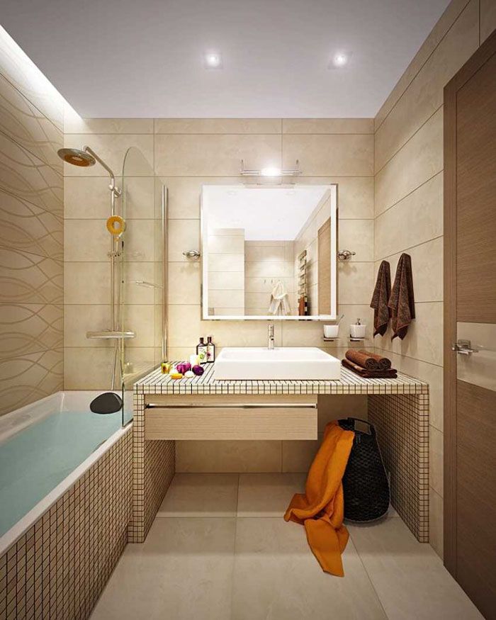 Все още живеят много голям брой хора малки апартаментикъдето площта на банята не надвишава 7 m². Но дори и в него дизайнерите успяват да създадат интериори по отношение на техните функционални и естетически качества, не по-лоши, отколкото в големите стаи. За щастие днес има всички условия за това по отношение на довършителните материали, водопровода и мебелите.