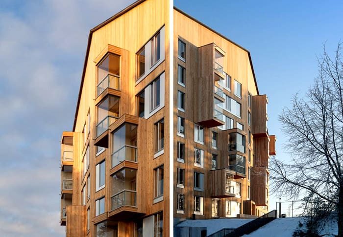 Жилищни сгради от масивни парчета дърво започнаха да се строят съвсем наскоро, а вертикалното им разположение е най-новата технология