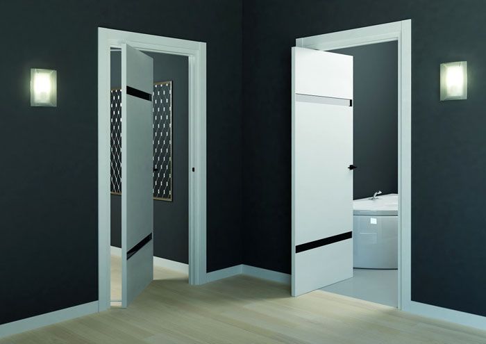 В обичайната версия е избрана люлееща се врата за банята и тоалетната. Като правило се отваря навън. Но за решаване на индивидуални проблеми е по-добре да използвате примерите по-долу.