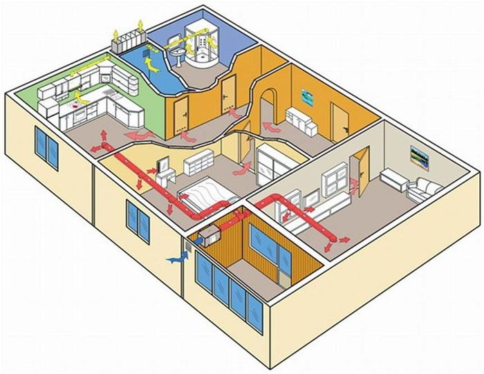 На етапа на проектиране се определя пътят, чрез който свежият въздух навлиза в жилищната сграда и замърсеният въздух се отстранява. Ако е необходимо, инсталирайте устройства за принудително изпускане с електрическо задвижване.
