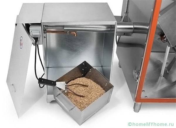 - в контейнера се зареждат около 0,8 кг дървени стърготини, дървени стърготини или стърготини;