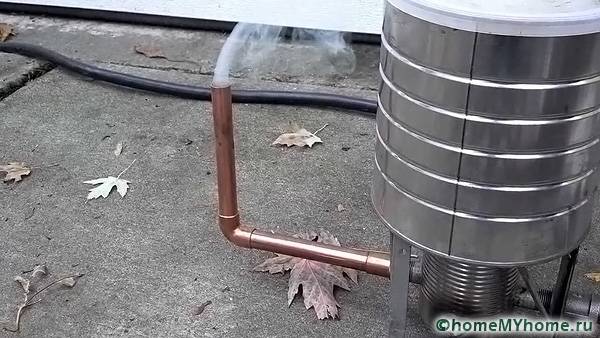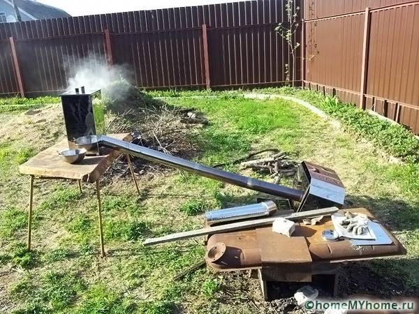 Температурата се измерва с термометър. Когато създавате това оборудване сами, можете да използвате подръчни материали. За тялото са подходящи саксии, кутии или всякакви други контейнери под формата на цилиндър. Коминът е направен от всяка подходяща тръба. Тази инсталация може да работи дори без вентилатор. В този случай гладът ще бъде по-слаб и процесът на пушене ще бъде значително забавен.