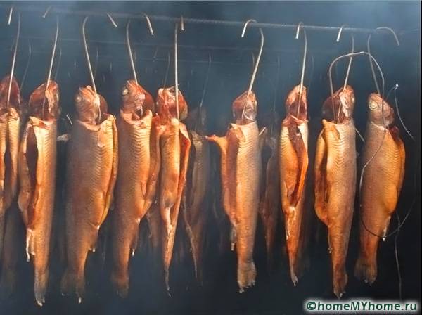 В пушилнята продуктите се окачват на нива. Той е изпълнен с дим и наситен с аромати. Този процес трябва постоянно да се наблюдава.