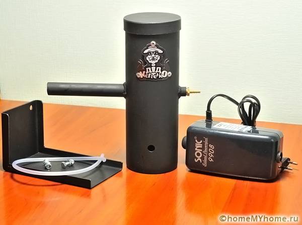 В същото време създаването на генератор на дим за пушене със студено пушене със собствени ръце включва доставката на газов състав под мощен натиск, който пълни резервоари за пушене с различни обеми. В този случай се използват помпени устройства с различен капацитет. Тези устройства се различават по обема на камерата за пушене, времето на работа и количеството произведен дим.