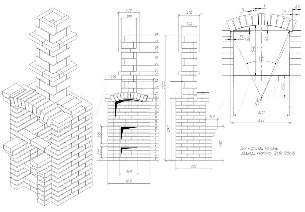 - το ελάχιστο πλάτος του φούρνου είναι 60 εκατοστά, το βέλτιστο είναι 80. Οι διαστάσεις εξαρτώνται πολύ από το χρησιμοποιούμενο τούβλο.