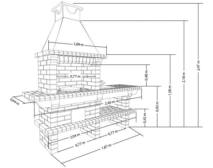 Οι διαστάσεις ενός μπάρμπεκιου από τούβλα εξαρτώνται άμεσα από τις ανάγκες σας. Σχέδια και φωτογραφίες μεγάλης ποικιλίας σχεδίων είναι εύκολο να βρεθούν στο Διαδίκτυο, δεν θα είναι δύσκολο να επιλέξετε την κατάλληλη επιλογή για την αυλή σας.
