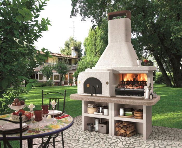 Το κύριο πράγμα στο σχεδιασμό ενός μαγκάλι κήπου είναι η σωστή κατανομή θερμότητας. Για αυτό, ένα μπάρμπεκιου και ένα τούβλο έχουν τρεις κάθετους τοίχους και μια καμινάδα για την εξάντληση των προϊόντων καύσης. Η θερμότητα από το καύσιμο σπρώχνει προς τα πάνω στην κουκούλα, οπότε είναι χαρά να δουλεύω σε μια τέτοια ψησταριά. Αυτοί οι φούρνοι στον κήπο διατηρούνται ζεστοί για μεγάλο χρονικό διάστημα, ώστε να μπορείτε να ψήνετε περισσότερες από μία παρτίδες κρέατος ενώ οι κάρβουνοι ψύχουν.