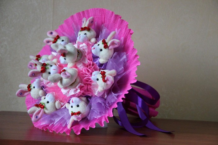 Πριν από την Πρωτοχρονιά, οι γονείς αγοράζουν συχνά διάφορα δώρα για τα παιδιά τους στο νηπιαγωγείο. Συνήθως είναι ένα γλυκό δώρο και γεμιστό παιχνίδι. Πρέπει να φανταστεί κανείς την αντίδραση των παιδιών σε ένα πανέμορφο ογκώδες μπουκέτο που αποτελείται από αφράτα ζώα παιχνιδιών!