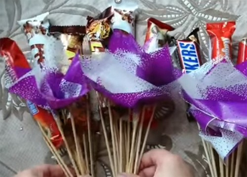 Είναι ευχάριστο να δώσετε και να λάβετε ένα μπουκέτο με καραμέλες: όμορφο και νόστιμο! Είναι εντάξει αν η ανθοδέσμη διαρκεί λίγο, γιατί δεν θα μαραθεί!