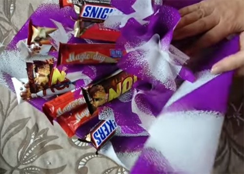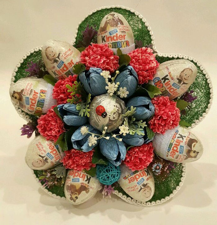 Για να καταλάβετε τι και πώς να φτιάξετε τέτοια μπουκέτα, πρέπει να δείτε τη φωτογραφία του τελικού προϊόντος: