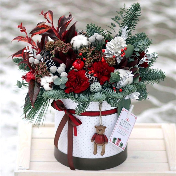 Όλοι είναι συνηθισμένοι να δίνουν λουλούδια στις γυναίκες.Αλλά την παραμονή της Πρωτοχρονιάς αξίζει να δώσετε όχι μόνο ένα τυπικό μπουκέτο, αλλά να καταπλήξετε την ψυχή μιας γυναίκας με μια ξεχωριστή χειμερινή ομορφιά.