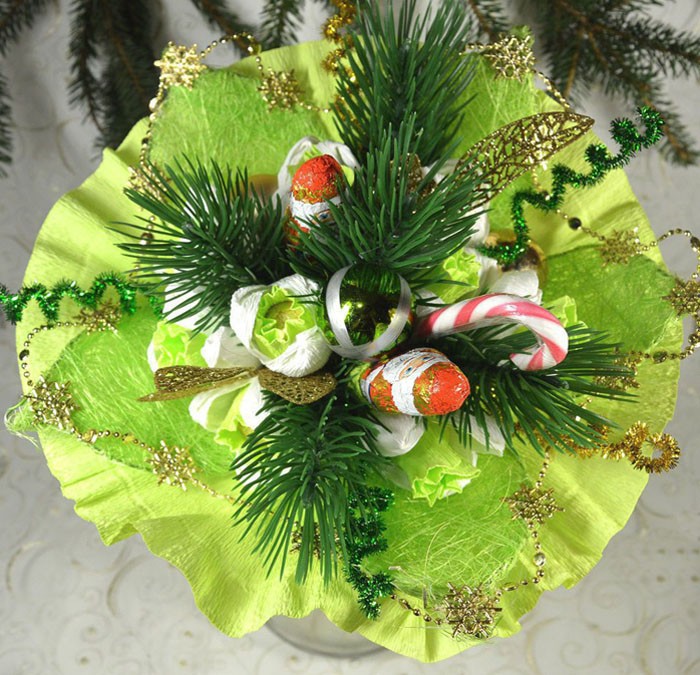 Εάν αποφασίσετε να φτιάξετε ένα νόστιμο και γλυκό μπουκέτο Πρωτοχρονιάς με τα χέρια σας, θα πρέπει να παρακολουθήσετε ένα μικρό μάστερ.