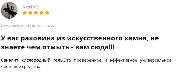 Έχετε μάθει πώς να καθαρίζετε έναν ασπρόμαυρο νεροχύτη από τεχνητή πέτρα, πώς λειτουργούν οι λαϊκές θεραπείες και τα οικιακά χημικά. Τώρα πρέπει να ακούσετε όσους έχουν δοκιμάσει τα πάντα. Οι κριτικές των καταναλωτών θα σας πουν τον καλύτερο τρόπο για να πλύνετε ένα νεροχύτη από τεχνητή πέτρα.