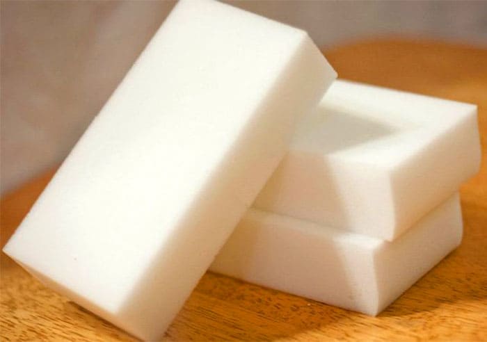 Δεν μπορούν να χρησιμοποιηθούν όλα τα εργαλεία. Η πρώτη προσοχή αξίζει ένα σφουγγάρι μελαμίνης, το οποίο μπορεί να αφαιρέσει σκουριά και λεκέδες αλατιού.
