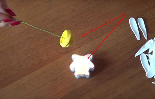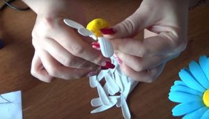 Η ιδιαιτερότητα αυτού του λουλουδιού είναι η μέση του. Πώς να το φτιάξετε σωστά από πλαστικό καστόρι περιγράφεται στις οδηγίες βίντεο: