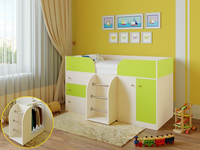 Ένα παχνί με ράφι αποθήκευσης για μικρά αντικείμενα είναι επίσης σε ζήτηση. Μια άλλη ενδιαφέρουσα επιλογή είναι μετασχηματίζοντας κρεβάτιπου κρύβει ένα τραπέζι ή ένα ενσωματωμένο ντουλάπι Ένα όμορφο παχνί με κουτιά αποθήκευσης για πράγματα ή παιχνίδια θα εξοικονομήσει χώρο στο δωμάτιο. Το μέγεθος του κρεβατιού λαμβάνει υπόψη το ύψος του παιδιού με περιθώριο