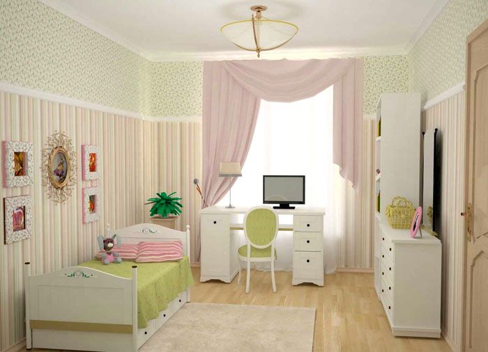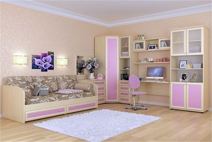 Τα χρώματα στο εσωτερικό του δωματίου του κοριτσιού θα είναι εντυπωσιακά διαφορετικά από το δωμάτιο του αγοριού. Τα κορίτσια είναι ευαίσθητα στο χρώμα ως παράγοντας που επηρεάζει τη διάθεση και το γενικό ψυχο-συναισθηματικό υπόβαθρο. Το κύριο κριτήριο για την επιλογή χρώματος είναι το ίδιο το παιδί. Ένα ενεργό κορίτσι μπορεί να του αρέσει φωτεινά χρώματα σε εσωτερικούς χώρους και μια ήρεμη νεαρή κοπέλα θα εκτιμήσει εύκολα τα παστέλ χρώματα. Το Διαδίκτυο είναι γεμάτο με φωτογραφίες επίπλων στο παιδικό δωμάτιο για κορίτσια, για να μην μπερδευόμαστε, θα εξετάσουμε τις καλύτερες χρωματικές λύσεις.